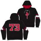 Hockey vibe Hoody with larger front and back appliques. Just in case you're wondering what the significance of 73 is, it's RD on a telephone.